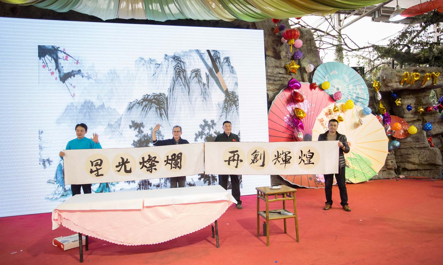 启动会上,总经理发言强调在当前的经济非常严峻的情况下,公司在努力经营的前提下,为提高员工的凝聚力,为鼓励和支持员工的辛勤工作、丰富员工活动,为此公司举办了一系列活动。事业推进部徐部长,就珍惜缘分,珍惜公司提供的培训资源,珍惜公司给予的支持保障,三点进行了说明。老师也对学习方法和要求进行了说明,希望大家能持之以恒、努力学习,培养自己的兴趣和爱好。1月14日公司举办的忘年会上进行了书法表演,参加书法表演的人员由总经理带领四位学员写了《星光灿烂》、《再创辉煌》两幅作品,现场也由老师即兴发挥写了《福》字,现场表演十分精彩,得到大家一阵一阵热烈的掌声。