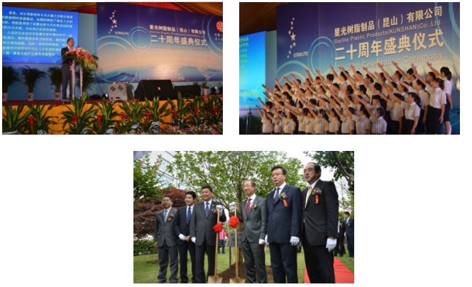 On May 19, starlight resin products (kunshan) co., LTD. Was set up twenty anniversary celebration ceremony was held in the company.Festival activities of guests: kunshan secretary who patriotic, kunshan city people's government of the communist party of China party soldier Shi Gongliang secretary, vice mayor, zhou town mayor CAI, itochu houses on the land, SOCC, general manager of the original management unifies, Japan, west of CNS 郷 headed by the President, ladies and gentlemen, star company 750 cadres and employees participated in the festival activities.