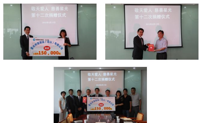 The 12th donation ceremony dubbed “Respecting the Nature, Loving People, and Being a Philanthropic Starlite” was held at the location of the government of Zhoushi Town on the morning of September 17, 2015. This donation is implemented mainly and specifically for offering assistance and treatment to the town residents who are suffering from severe diseases.